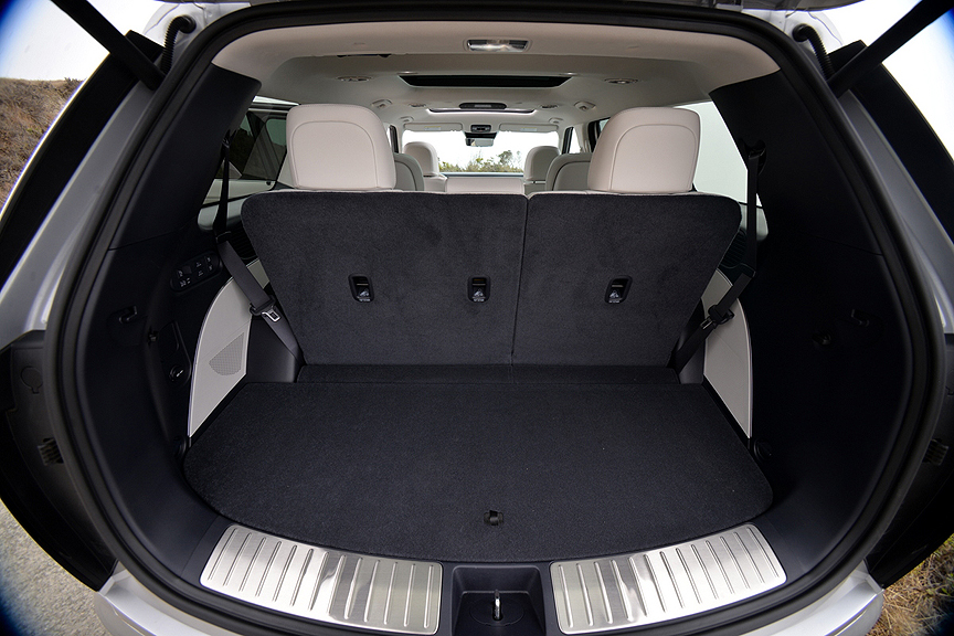 displays a complete set of legible, illuminated buttons controlling the second and third row seatbacks. They can be raised or lowered, partially or fully, independently